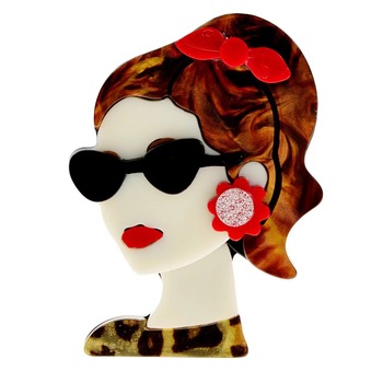 Stock de accesorios de moda acetato acrílico sexy chica retrato joyería fina broches para ropa