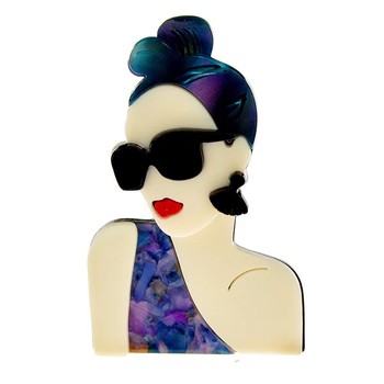 مجوهرات فاخرة الفتاة مع صورة ذيل حصان دبابيس دبابيس أكريليك شعبية دبابيس للنساء للملابس